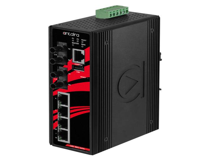 Antaira LMX-0602-S3-T-V2 - 6-Port Industrial Light Layer 3 Managed Ethernet Switch, with 4*10/100Tx and 2*100Fx Single-Mode 30Km by ANTAIRA