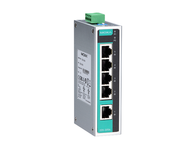 The EDS-205A series are 5-port industrial Ethernet switches that support IEEE 802.3 and IEEE 802.3u/x with 10/100M full/half-duplex, MDI/MDI-X auto-sensing. The EDS-205A switches provide 12/24/48 VDC (9.6 to 60 VDC), 18 to 30 VAC redundant power inputs that can be connected simultaneously to live AC/DC power sources. These switches have been designed for harsh industrial environments, such as in maritime (DNV/GL/LR/ABS/NK), rail wayside, highway, or mobile applications(EN 50121-4/NEMA TS2/e-Mark), or hazardous locations (Class I Div. 2, ATEX Zone 2) that comply with FCC, UL, and CE standards.