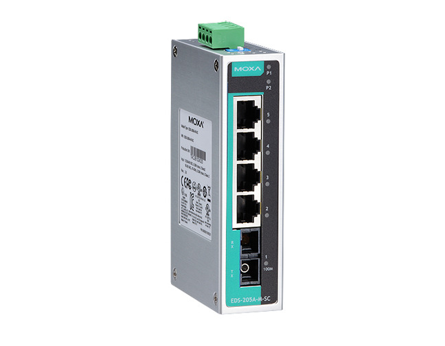 Moxa EDS-205A-S-SC-IEX - Unmanaged switch with 4 10/100BaseT(X) ports, and 1 100BaseFX single-mode port with SC connector by MOXA