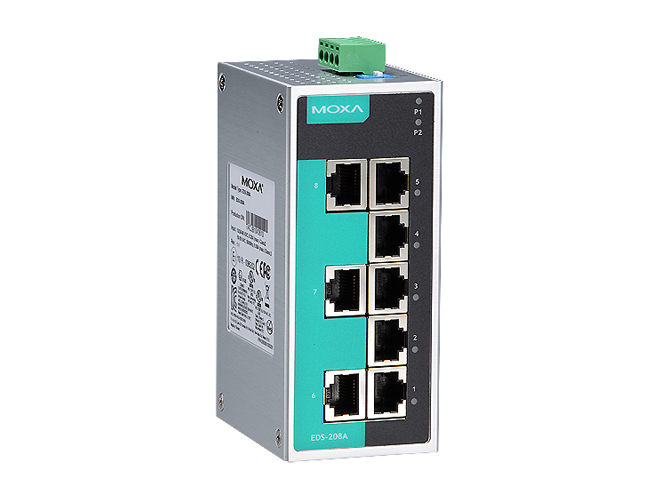 Moxa EDS-208A-T - Unmanaged Ethernet switch with 8 10/100BaseT(X) ports, -40 to 75 Degree C operating temperature by MOXA
