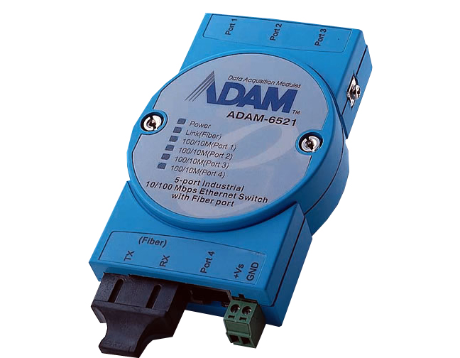 The ADAM-6521 is an industrial-grade Ethernet hub for infrastructure networking solution in industrial Automation environment. It allows users to cost-effectively expand their industrial network with ease. The ADAM-6521 consists of one fiber optic and four RJ-45 ports. With fiber optic, you can prevent noise interference from the system and transmission distance up to 2 km. The design is focused on industrial-grade reliability and stability. Thus, the ADAM-6521 is especially suited for industrial environments with Ethernet networking needs, e.g. semi-conductor factories, inventory control environments, assembly lines, production and more.