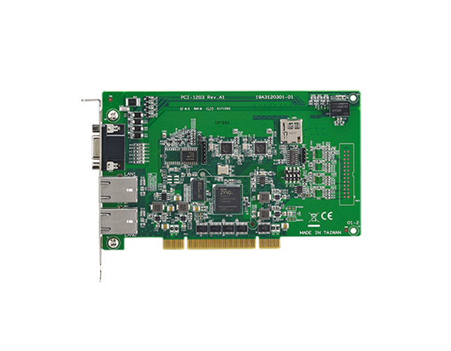 The PCI-1203 is a 2-port EtherCAT PCI Universal card. It is a ready-to-use EtherCAT development platform for all PC-based industrial automation. The EtherCAT protocol stack is executed autonomously on the PCI card. It allows the host to handle up to two EtherCAT networks with extremely short cycle time for Motion and pure I/O applictions. For EtherCAT motion port, communication cycle time is no more than 500 µs for connecting 32 axes of servo motors and for fast I/O ports the cycle time is no more than 200us in a high speed I/O system.. There are 4 - channel isolated digital outputs and 8 - channel isolated inputs on the PCI-1203 to meet the extra high speed I/O requirements. Real-time and high-precision capability are features of PCI-1203. In addition, all Advantech motion controllers use the "Common Motion API" architecture which is a unified user programming interface and graphical utility. This architecture saves application maintenance and upgrades. Programmers can benefit from using any Advantech SoftMotion controller without changing large amounts of the application code. User-friendly examples decrease programming load, helping users complete configuration and diagnosis easily.