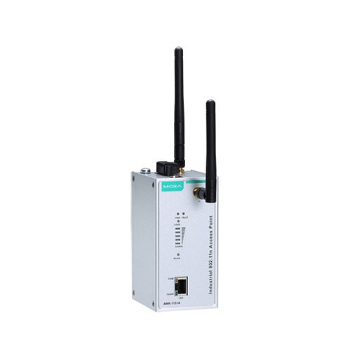 The AWK-1131A industrial wireless AP/client meets the growing need for faster data transmission speeds by supporting IEEE 802.11n technology with a net data rate of up to 300 Mbps. The AWK-1131A is compliant with the industrial standards and approvals, covering operating temperature, power input voltage, surge, ESD and vibration. The two redundant DC power inputs increase the reliability of the power supply. The AWK-1131A can operate on either the 2.4 or 5 GHz bands and is backwards-compatible with existing 802.11a/b/g deployments to future-proof your wireless investments.
